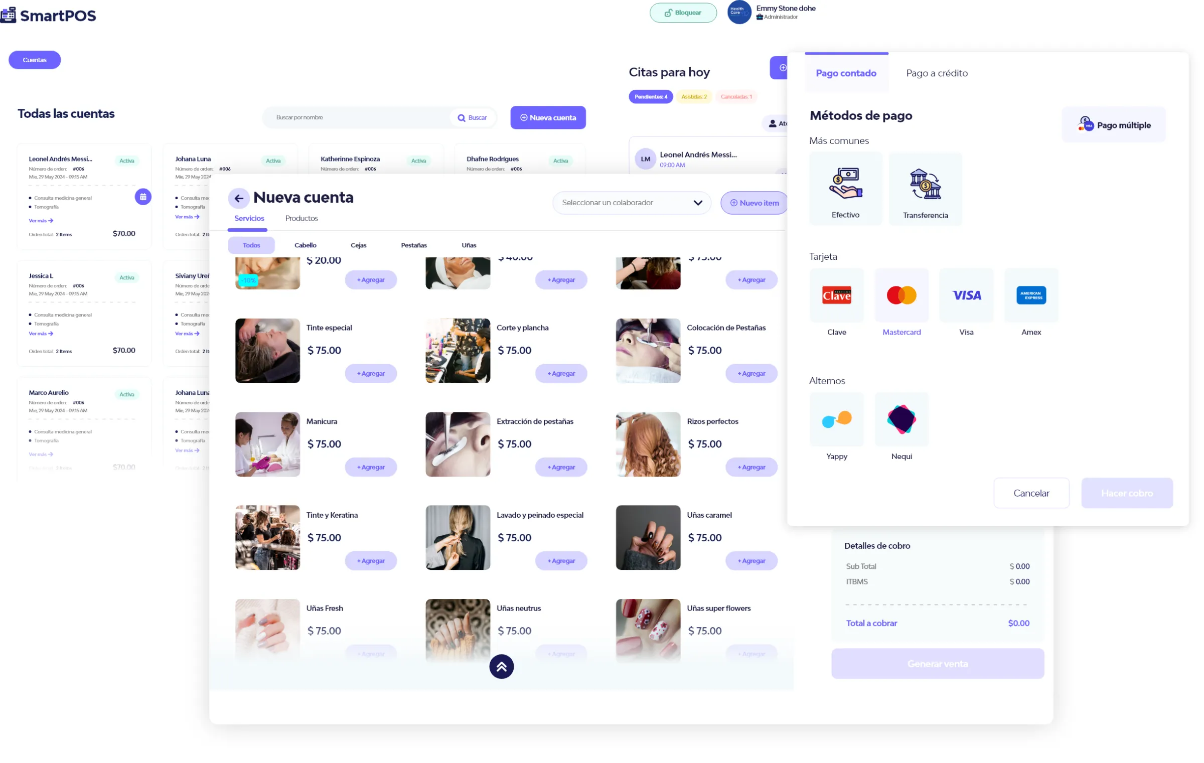 Integración con SmartBooking: Abre una cuenta desde tu agenda online y gestiona servicios o productos elegidos por el cliente desde una cita.